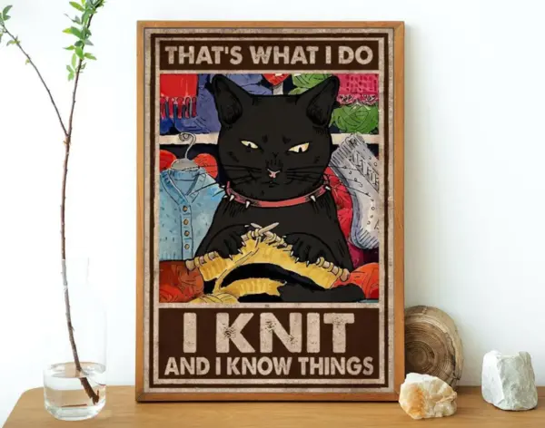 That S What I Do I Knit And I Know Things Poster Cat Lovers Black Cat Knitting Lover Gift Sewing Room Decor Vertical Poster No Framed