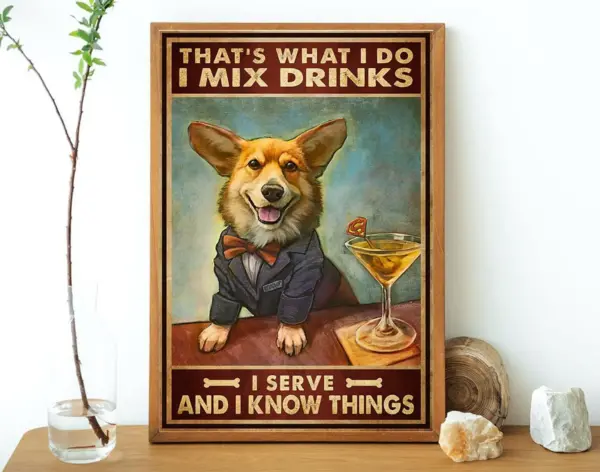 That S What I Do I Mix Drinks And I Serve And I Know Things Poster Corgi Lover Idea Gift For Bartender Vertical Poster No Framed