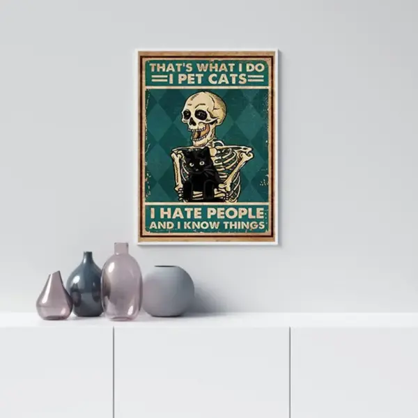 That S What I Do I Pet Cats I Hate People I Know Things Poster Funny Cat Poster Skeleton Poster Skull Wall Decor Cat Lover Gift