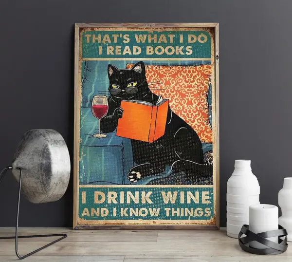 That S What I Do I Read Book I Drinks Wine And I Know Things Cat Poster Art Wall Art Print