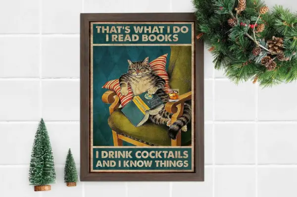 That S What I Do I Read Books Drink Cocktail And I Know Things Poster Black Cat Poster Cat Lovers Gift Cocktail Poster Home Decor