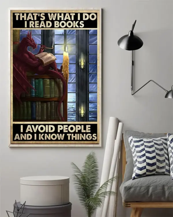 That S What I Do I Read Books I Avoid People And I Know Things Dragon Lover Poster Book Lovers Gift