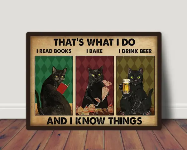 That S What I Do I Read Books I Bake I Drink Beer I Know Things Poster Black Cat Poster Cat Lover Gift Book Decor Baking Poster Beer