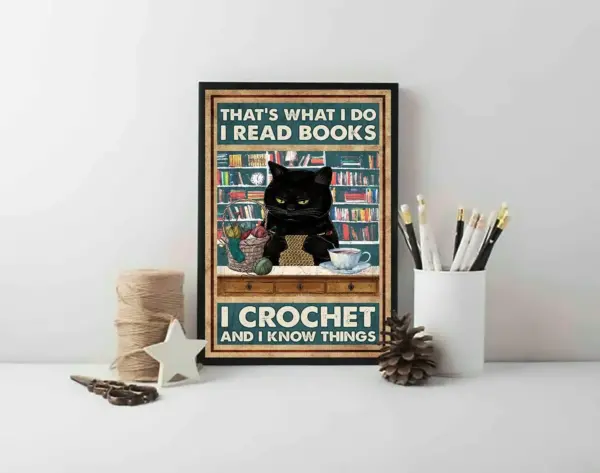 That S What I Do I Read Books I Crochet And I Know Things Poster Readers Black Cat Poster Crochet Lover Poster Book Lover Poster