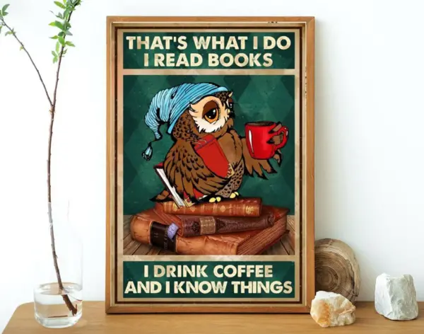 That S What I Do I Read Books I Drink Coffee Poster Idea Gift For Books Coffee Lovers Owl Poster Home Decor Vertical Poster No Framed