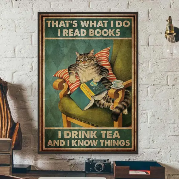 That S What I Do I Read Books I Drink Tea And I Know Things Cat Poster Animal Poster Prints Cat Lovers Gift Unframed Poster Vintage Poster