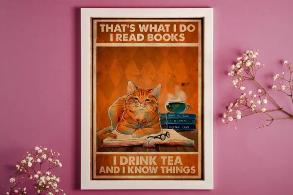 That S What I Do I Read Books I Drink Tea And I Know Things Poster Book Poster Cat Poster Book Lover Gift Cat Lover Gift Cat Art