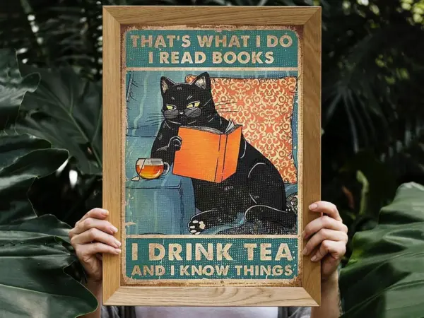 That S What I Do I Read Books I Drink Tea And I Know Things Poster Cat Smoke Poster Wall Decoration Home Decor Gifts Wall Decor Poster