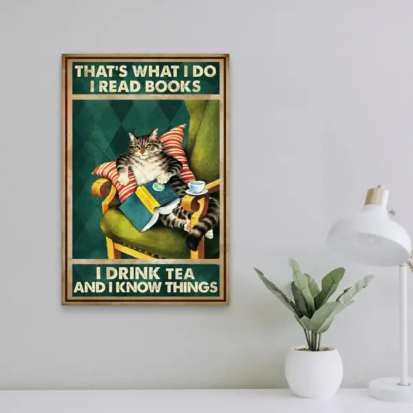 That S What I Do I Read Books I Drink Tea And I Know Things Poster Cute Cat Custom Poster Birthday Gift Personalized Gifts Cat Pet