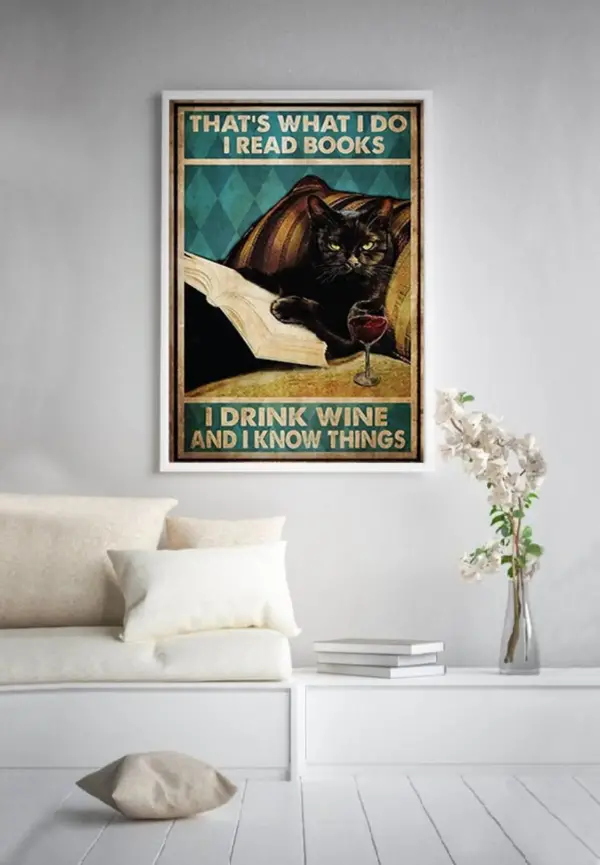 That S What I Do I Read Books I Drink Wine And I Know Things Poster Black Cat Poster Cat Lovers Gift Drinking Poster Home Decor
