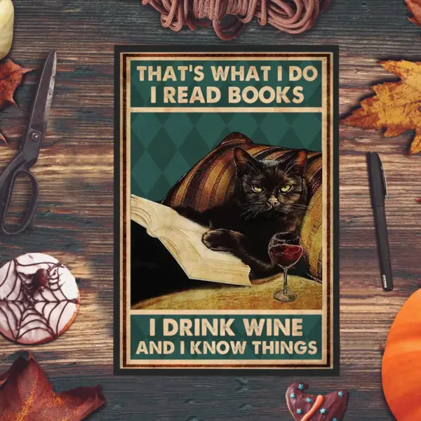 That S What I Do I Read Books I Drink Wine And I Know Things Poster Black Cat Poster Reading Book Art Printable Wall Art Signs For Home
