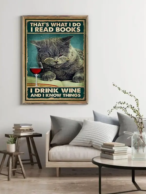 That S What I Do I Read Books I Drink Wine And I Know Things Poster Cat Poster Cat Lover Gift Drinking Poster Home Decor Wine Print Art