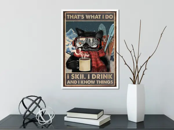 That S What I Do I Skii I Drink And I Know Things Poster Black Cat Print Drinking Poster Skii Lover Poster Home Decor Skii Poster