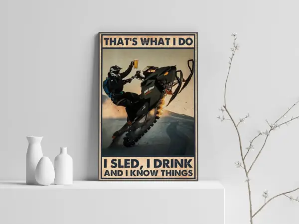 That S What I Do I Sled I Drink And I Know Things Poster Snowboarding Poster Beer Lover Gift Sport Poster Winter Sport Wall Art