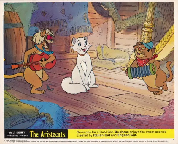 The Aristocats 1970 Vintage Original 10 Uk Lobby Card 1 Duchess Italian Cat English Cat The Serenade