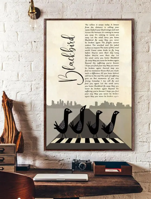 The Beatles Poster Black Bird Poster Music Favorite Song Wall Art Home Decor Gift For Beatles Fan Poster The Beatles Lyrics Poster Framed Matte Canvas