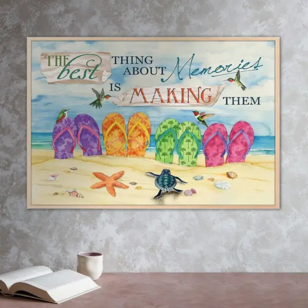 The Best Thing About Memories Is Making Them Canvas Poster Beach Poster Beach Lover Gift Summer Poster Sandals Colorful Poster