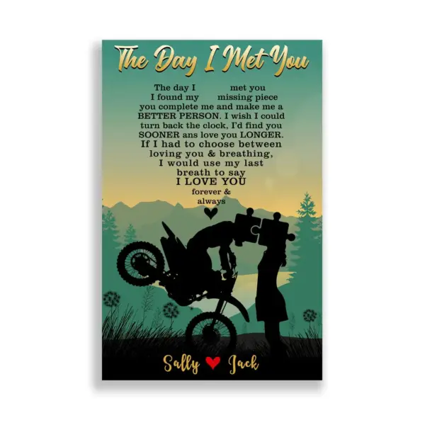 The Day I Met You Personalized Motorcycle Couple Poster I Found My Missing Piece Customized Name Wedding Anniversary Gift Home Decor