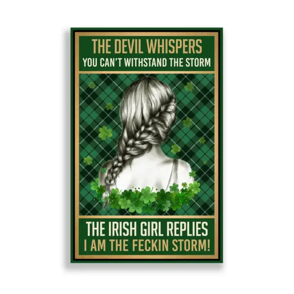 The Devil Whisper Irish Girl Replies Poster Green Buffalo Plaid Decor Shamrock Pattern St Patrick S Day Irish Home Decor Braided Hair