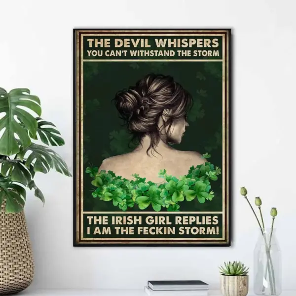The Devil Whispers You Can T Withstand The Storm The Irish Girl Replies I Am The Fecking Storm Poster Unframed St Patrick S Day Poster
