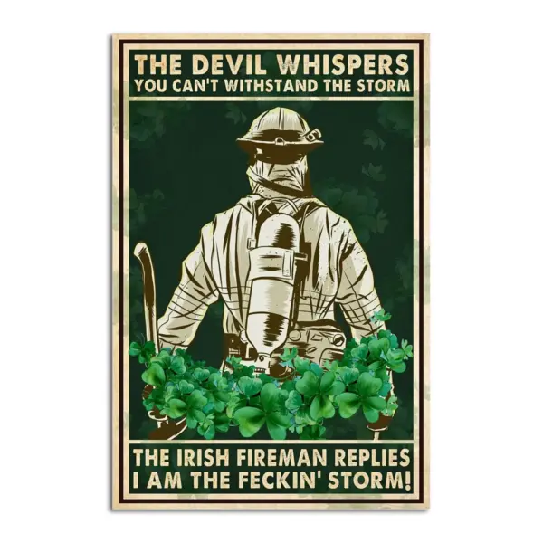 The Devil Whispers You Can T Withstand The Storm Vertical Poster Irish Fireman Poster Firefighter Poster St Patrick Day Poster