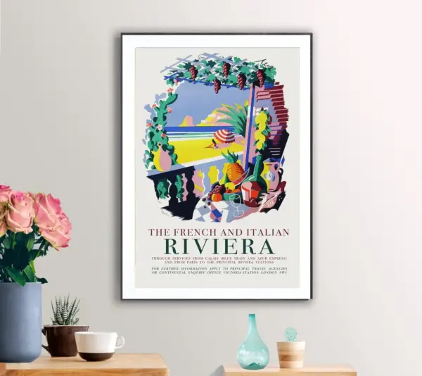 The French And Italian Riviera Vintage Travel Poster Poster Paper Sticker Or Canvas Print Gift Idea
