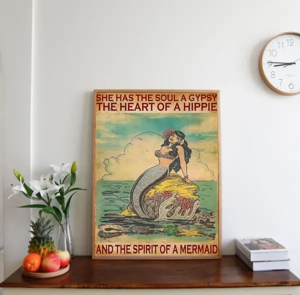 The Heart Of A Hippie And The Spirit Of A Mermaid Poster Mermaid Poster Mermaid Wall Art Best Gift For Mermaid Lover Mermaid Wall Decor
