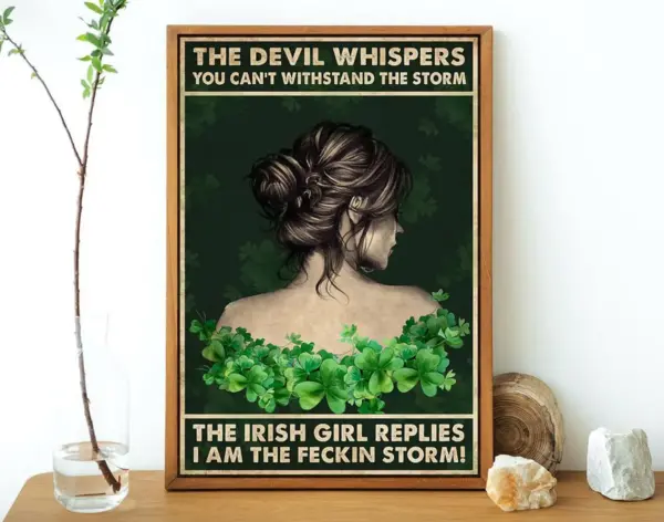The Irish Girl Iam The Feckin Storm Poster Irish Girl Whispered Back Love Irish The Luck Of Irish Clover Vertical Poster No Framed