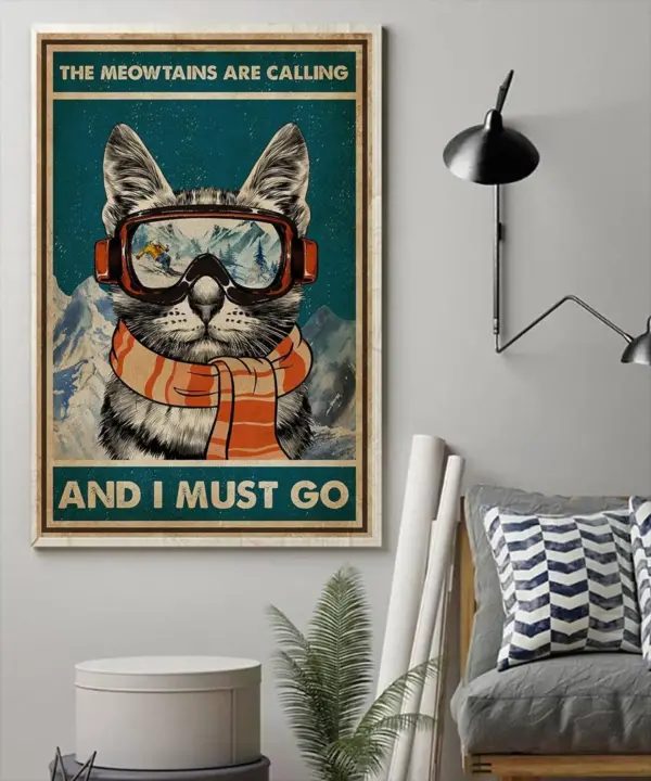 The Meowtains Are Calling And I Must Go Poster Climbing Lover Cat Lover Gift For Climbing Lover Wall Decor Signs For Home