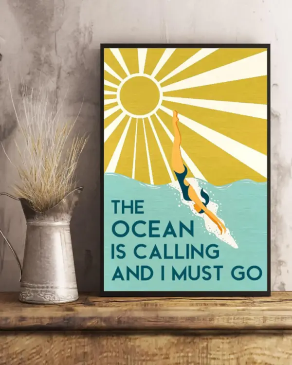 The Ocean Is Calling And I Must Go Poster Diving Print Swimming Beach Print Retro Vintage Signs For Home Vertical Poster No Framed