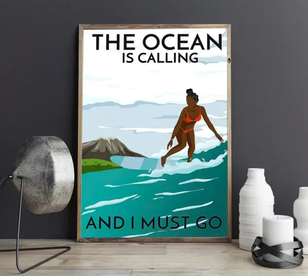 The Ocean Is Calling And I Must Go Poster Poster Beach Print Retro Style Poster Vintage Poster Printable Wall Art Signs For Home