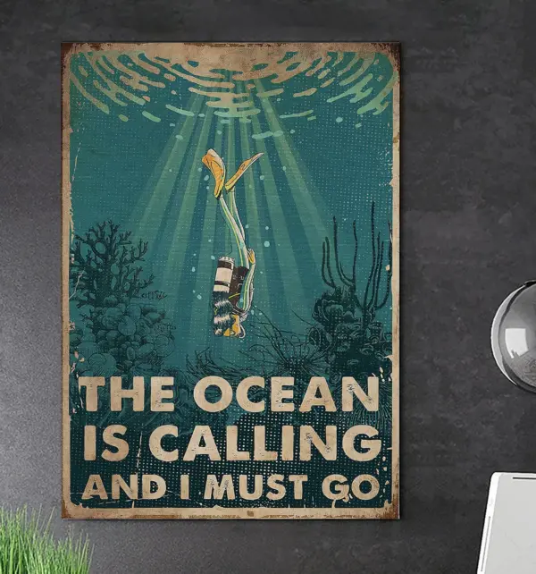 The Ocean Is Calling And I Must Go Poster Poster Print Art Print Best Gift Ever Home Decor Poster Prints Scuba Poster Travel Poster
