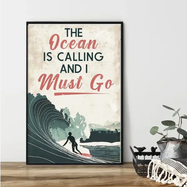 The Ocean Is Calling And I Must Go Vintage Poster Surfing Girl Poster Surfing Lovers Poster No Frame