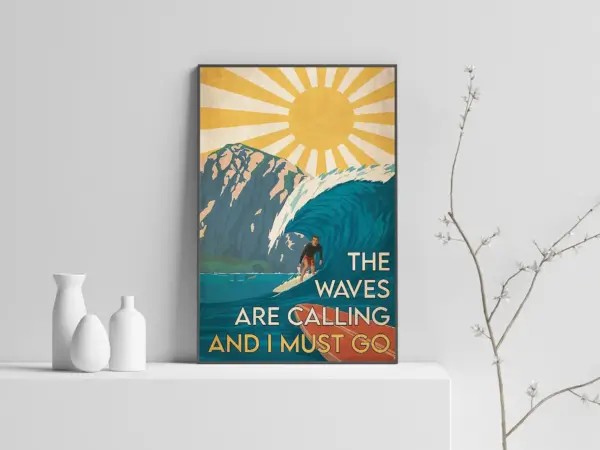 The Waves Are Calling And I Must Go Poster Canvas Art Surfing Poster Diving Print Swimming Poster Retro Vintage Poster Signs For Home