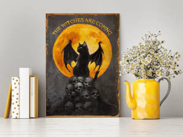 The Witches Are Coming Black Cat Vertical Poster Cat Vertical Art Print Black Cat Art Wall Sewing Lovers Poster
