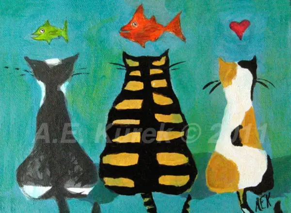 Thee Cats Cat Art Print Tiger Cat Print Calico Cat Print Cat With Fish Print Print Gift For Cat Lover