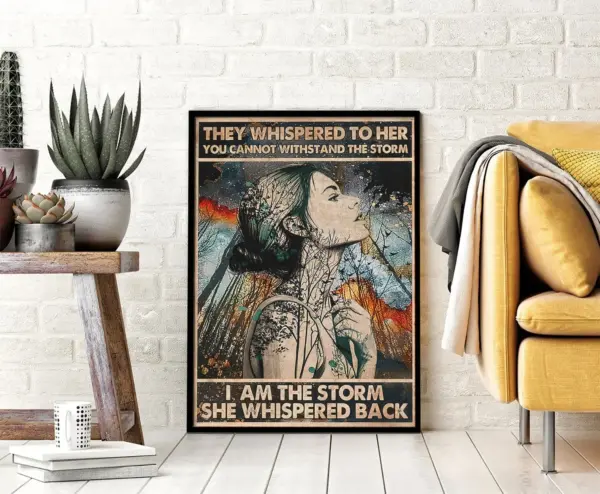 They Whispered To Her You Cannot Withstand The Storm I Am The Storm Poster Girl Into The Forest Art Print Retro Girl Art Poster Frames