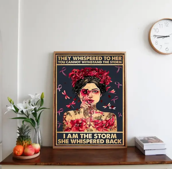 They Whispered To Her You Cannot Withstand The Storm I Am The Storm She Whispered Back Poster Cancer Warrior Wall Art Cancer Fight Poster