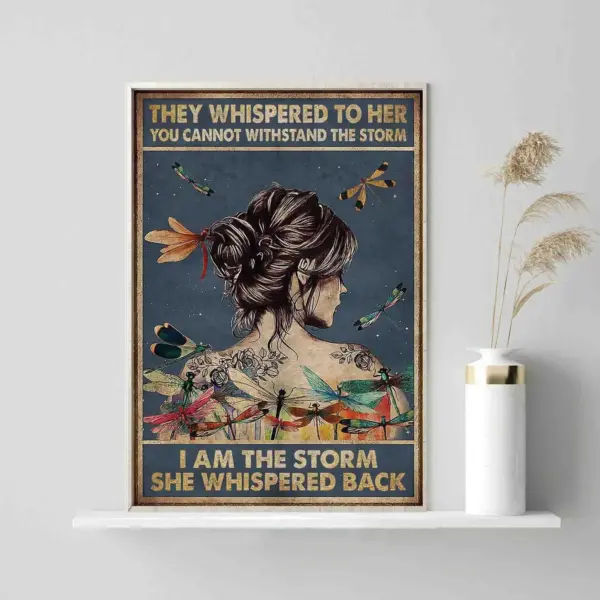They Whispered To Her You Cannot Withstand The Storm I Am The Storm She Whispered Back Poster Retro Girl Art Dragonfly Wall Art No Frame