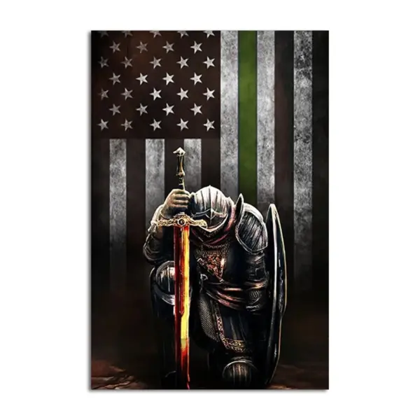 Thin Green Line Flag Poster Knight Templar Patriotic Army Military Veteran Gift For Veteran
