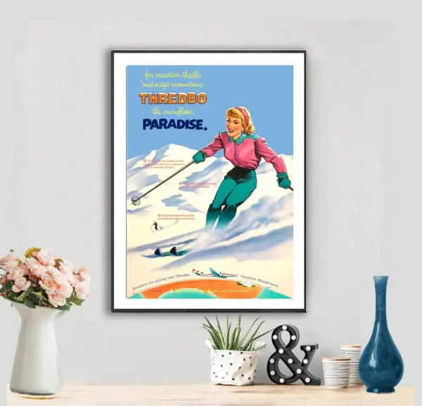 Capture the beauty of Thredbo's snowy landscapes with this vintage-style travel poster print, perfect for alpine decor and winter sports enthusiasts.
