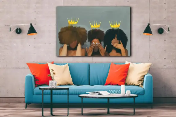 Three Black Queens Hear No Evil See No Evil Speak No Evil Canvas Black Women Poster Melanin Queen Wall Art Afro Queen Wall Art Wise Girl
