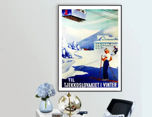 Til Tjekkoslovakiet I Vinter Vintage Ski Poster Poster Print Sticker Or Canvas Print Gift Idea Christmas Gift
