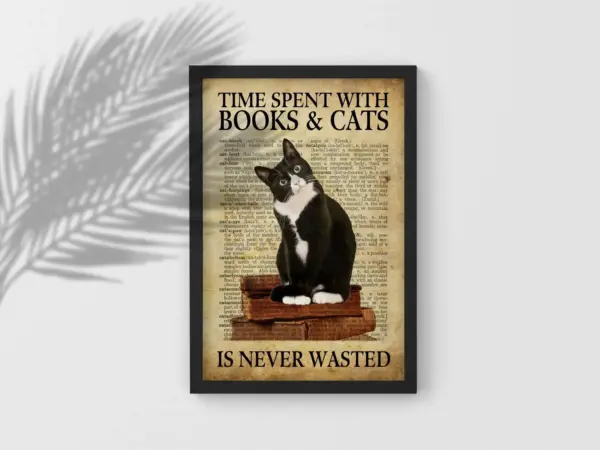 Time Spent With Books And Cats Is Never Wasted Poster Black Cat Art Love Reading Book Art Print Cat Lover Gift Cat Art Signs For Home