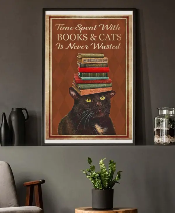 Time Spent With Books And Cats Is Never Wasted Poster Pet Lover Poster Cat Lover Gift Book Poster Book Lover Gift Funny Kitty Poster