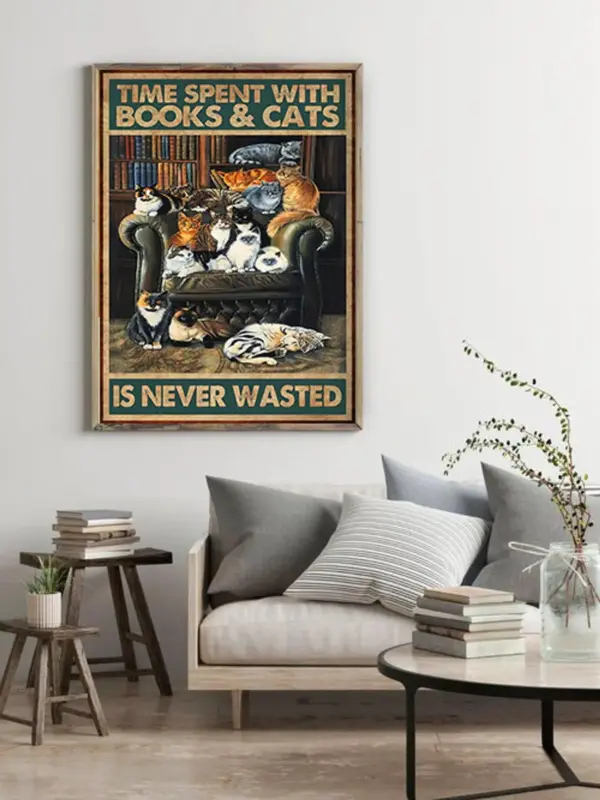 Time Spent With Books Cats Is Never Wasted Poster Cute Cat Poster Funny Cat Wall Decor Book Poster Cat Mom Gift Nursery Wall Art