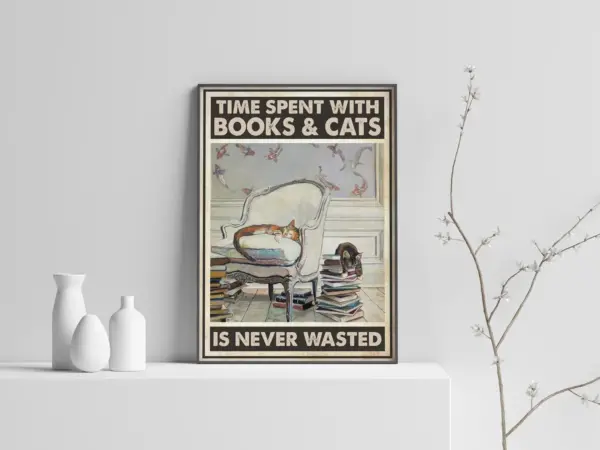Time Spent With Books Cats Is Never Wasted Unframed Poster Reading Book Poster Book Lovers Gift Bookworm Poster Cat Lover Poster