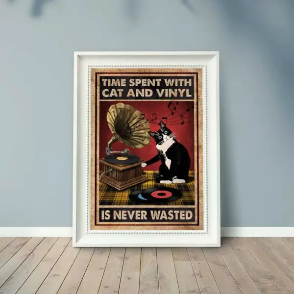 Time Spent With Cat And Vinyl Is Never Wasted Poster Black Cat Poster Music Poster Vinyl Record Vinyl Wall Art Signs For Home