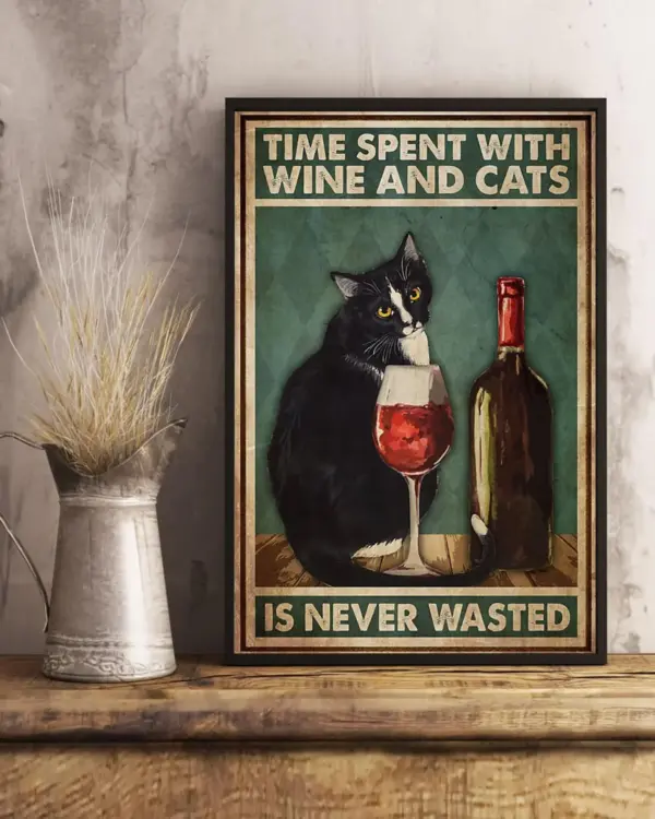 Time Spent With Cat And Wine Vertical Poster Poster Art Best Gifts Ever Signs For Home Wall Decoration No Frame