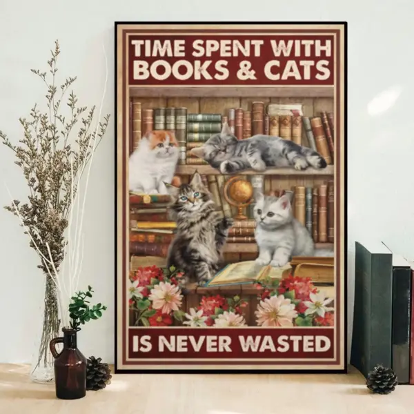 Time Spent With Cats And Books Is Never Wasted Framed Poster Unframed Poster Home Decor Wall Art